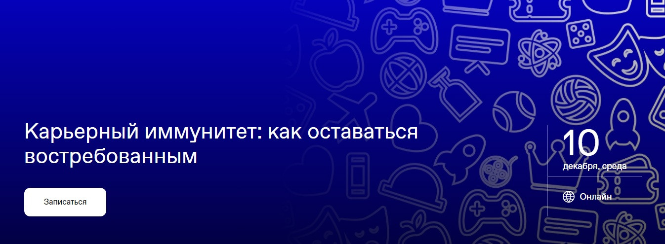 В рамках проекта 10 декабря 2025 с 10:00 до 11:30 по московскому времени состоится онлайн-встреча на тему «Карьерный иммунитет: как оставаться востребованным».
