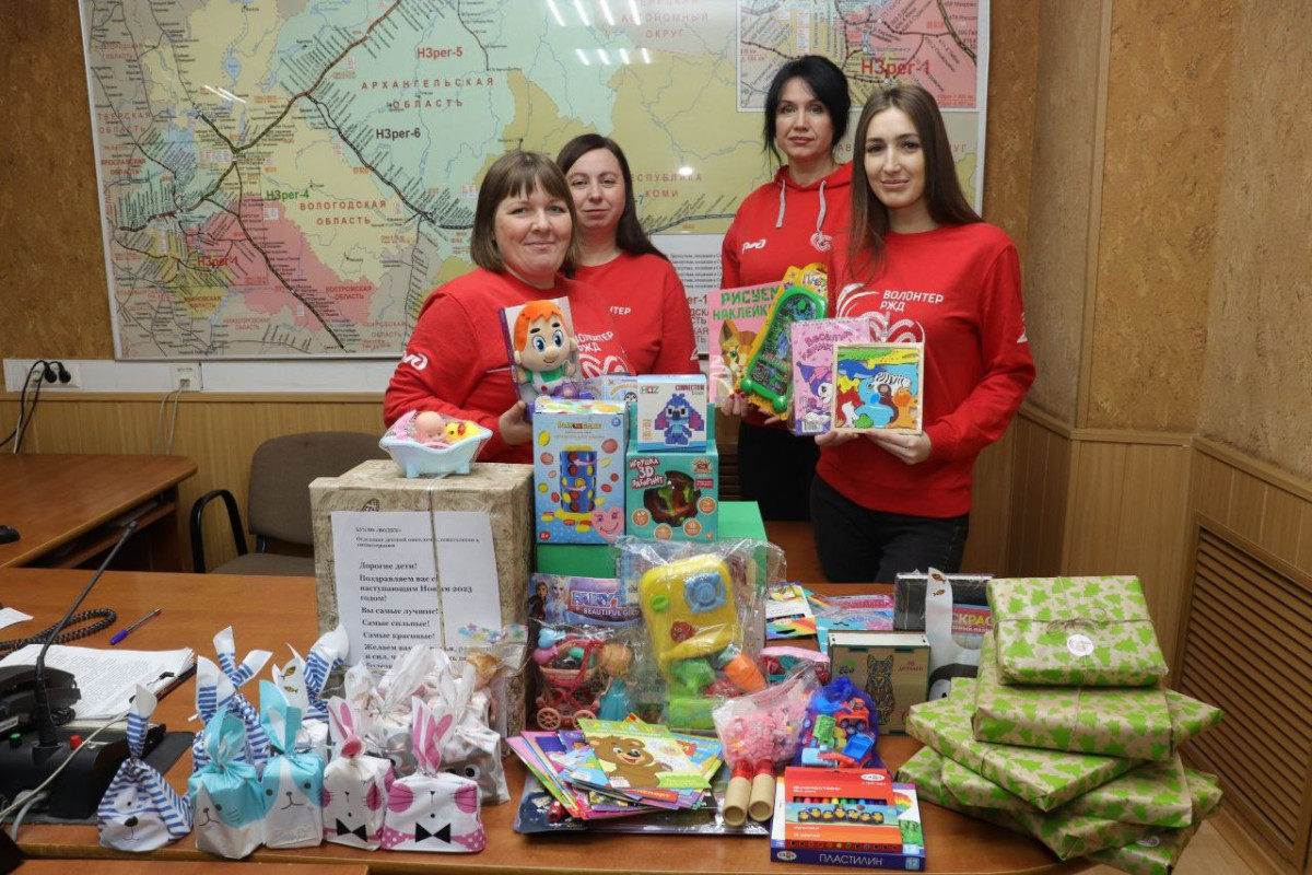 Вологодские волонтеры Северной железной дороги собирают новогодние подарки для детей Алчевска