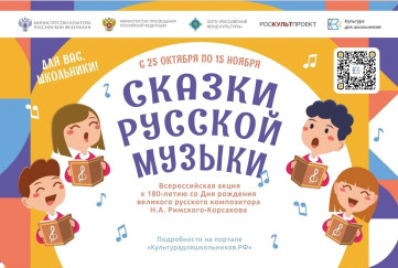 С 25 октября по 15 ноября в рамках межведомственного культурно-образовательного проекта «Культура для школьников» пройдет Всероссийская акция к 180-летию со Дня рождения великого русского композитора Н.А.Римского-Корсакова.