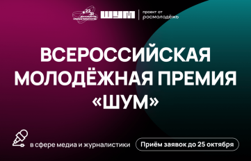 Прием заявок на первую Всероссийскую молодежную премию в сфере медиа и журналистики «ШУМ» продлится до 25 октября. Принять участие могут молодые люди со всей России по двум возрастным категориям: от 14 до 17 лет и от 18 до 35 лет.