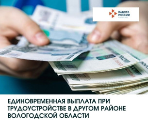 С июля 2021 года в Вологодской области реализуется мера поддержки в виде единовременной выплаты в размере 60 650 рублей гражданам, трудоустроившимся по направлению органов службы занятости населения в другом муниципальном районе (муниципальном или городском округе) региона, отличном от их места жительства.