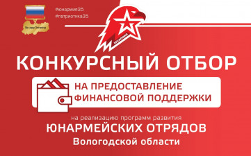 Стартовал конкурсный отбор на предоставление финансовой поддержки подведомственным учреждениям администраций муниципальных районов и городских округов Вологодской области и социально ориентированным некоммерческим организациям, осуществляющим свою деятельность на территории муниципальных районов и городских округов Вологодской области, на реализацию программ развития юнармейских отрядов Вологодской области.